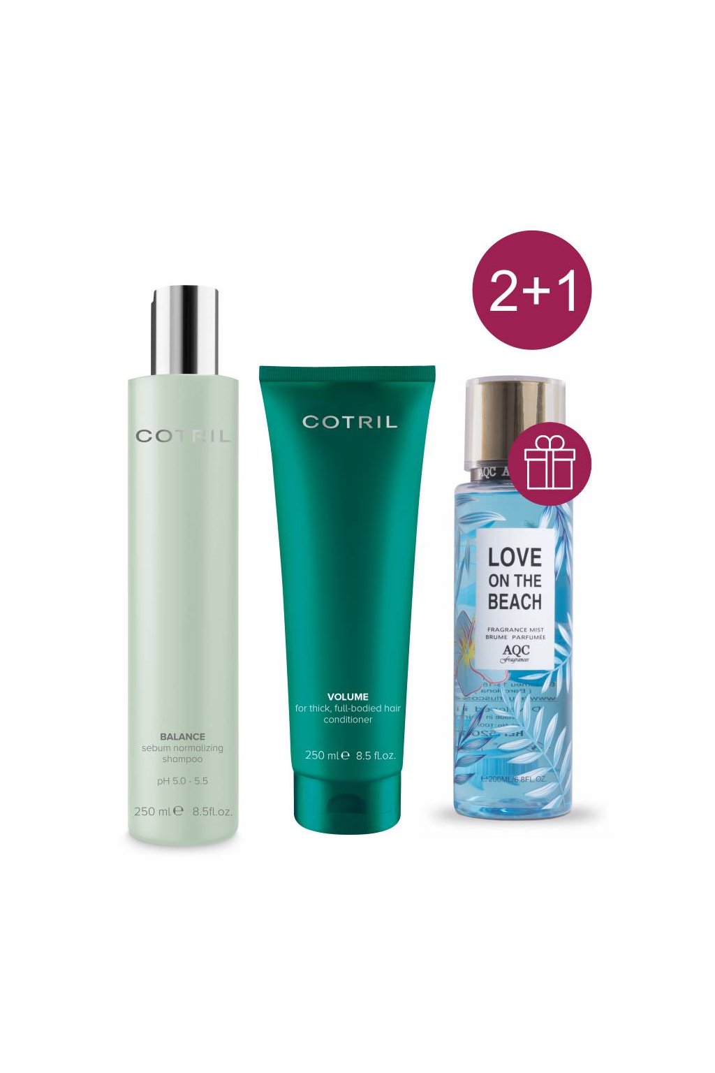 Akce 2+1 Cotril BALANCE pro mastné vlasy šampon, VOLUME balzám +ZDARMA Tělová mlha IDC52017