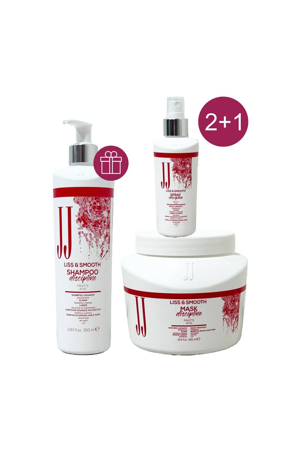 Akce 2+1 JJ LISS & SMOOTH pro perfektně hladké vlasy šampon, maska, sprej