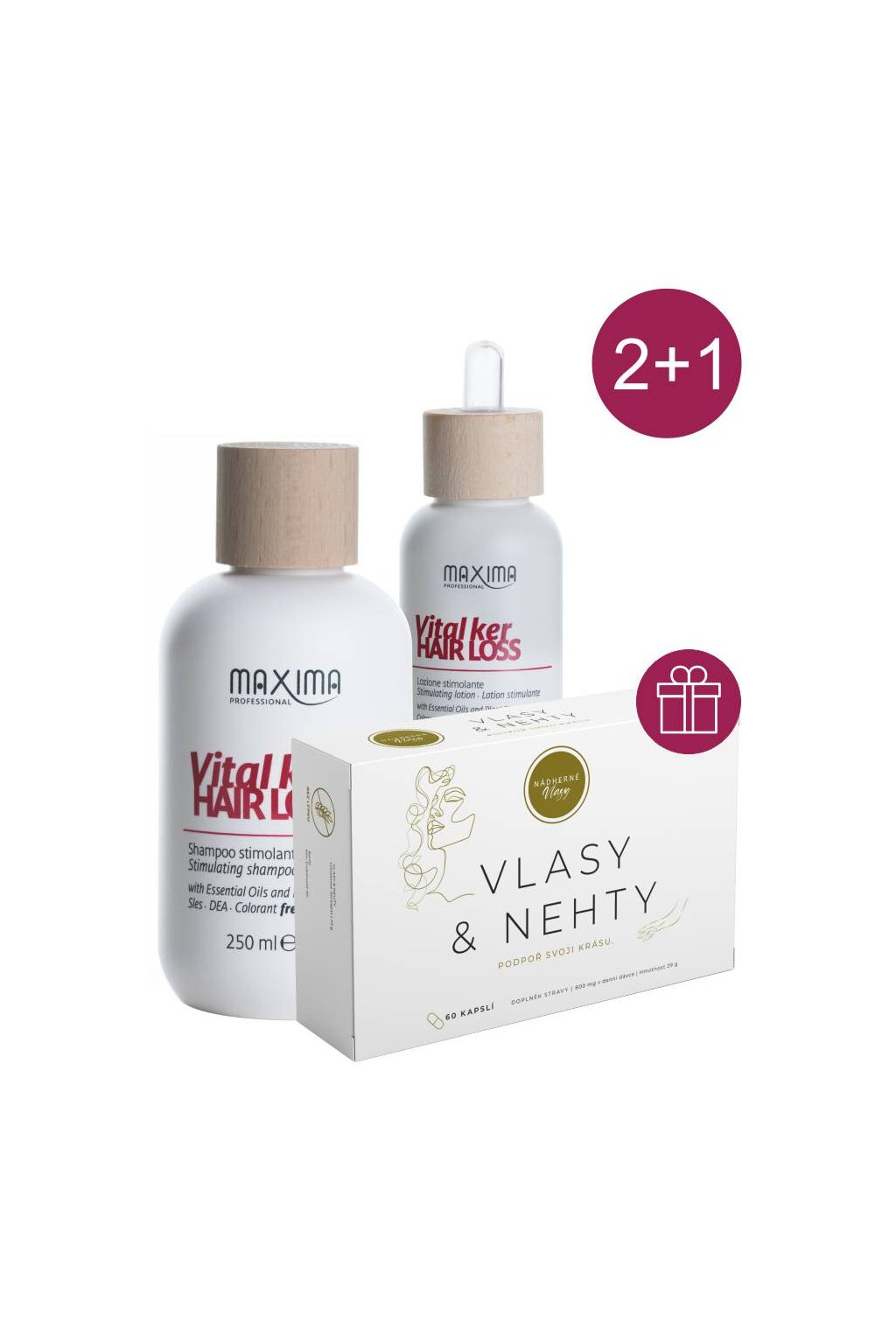 Akce 2+1 Maxima VITAL KER proti padání šampon, tonikum +ZDARMA Kapsle pro vlasy a nehty