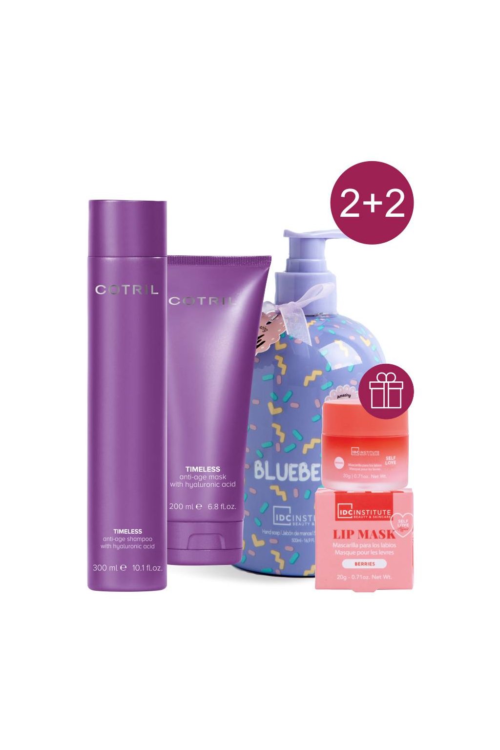 Akce 2+2 Cotril TIMELESS Šampon, maska +ZDARMA IDC Candy Tekuté mýdlo borůvka a Self Love Maska na rty