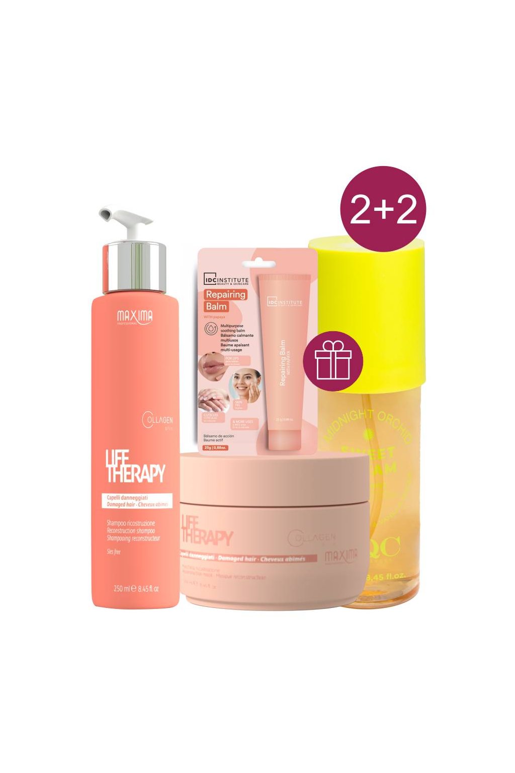 Akce 2+2 Maxima LIFE šampon, maska +ZDARMA IDC multi balzám 25g a tělová mlha Midnight Orchid