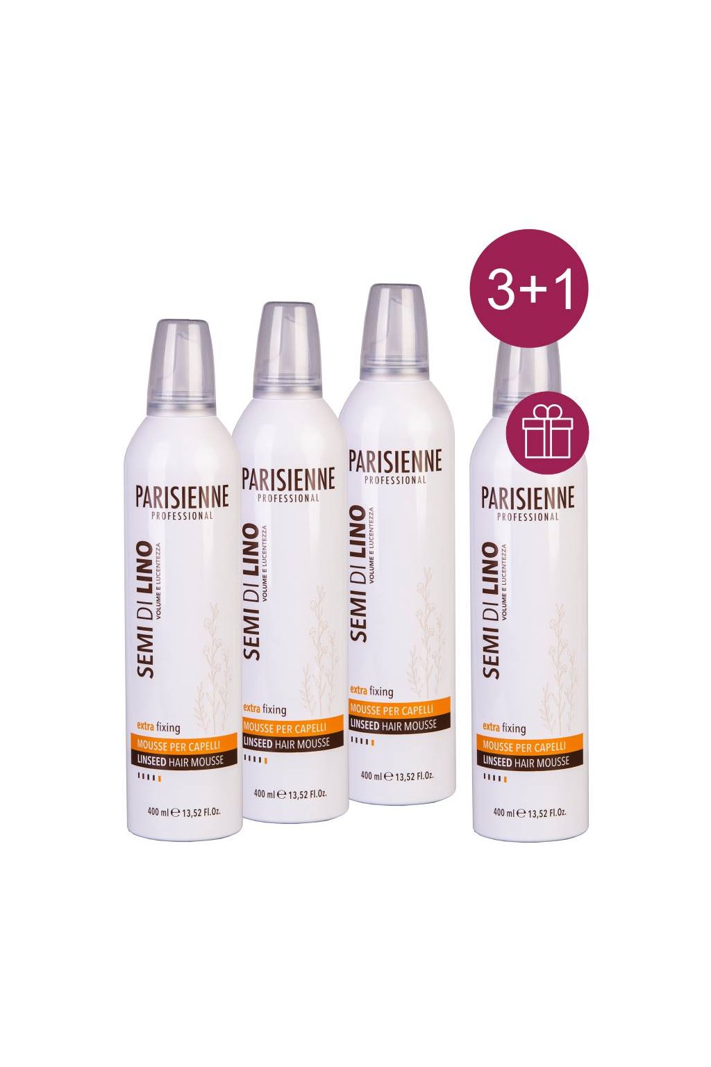 Akce 3+1 Parisienne SEMI Pěna silná pro objem, vyživující lněná semínka 400ml