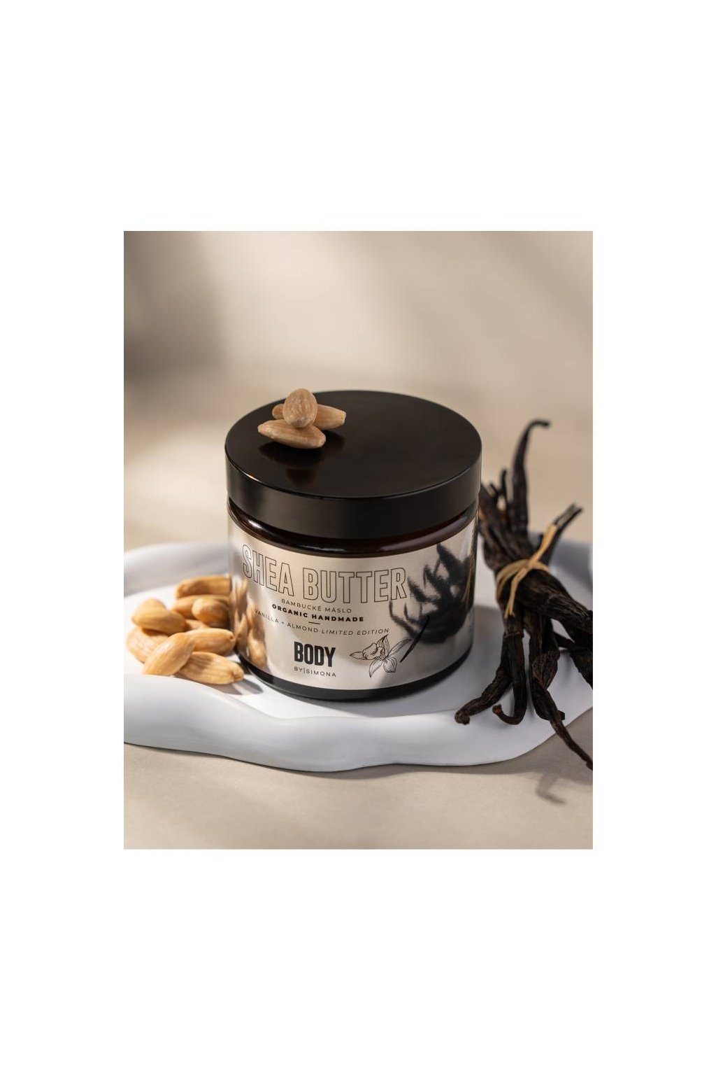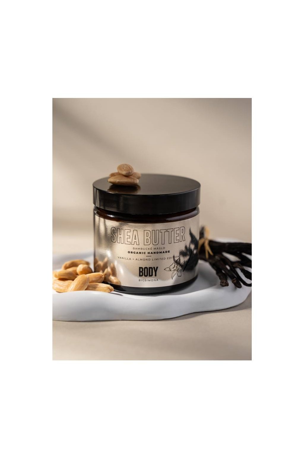 Beauty By Simona Shea Butter Bambucké máslo Vanilla + Almond Limited Edition - Zklidňující bambucké máslo v kombinaci s mandlovým olejem a extraktem z pravé vanilky hloubkově hydratuje, zjemňuje a vyživuje i tu nejsušší pokožku. Bohaté na antioxidanty a esenciální mastné kyseliny obnovuje kožní bariéru, zklidňuje podráždění a chrání pleť před vysušováním. Sladce krémová vůně potěší smysly i duši.