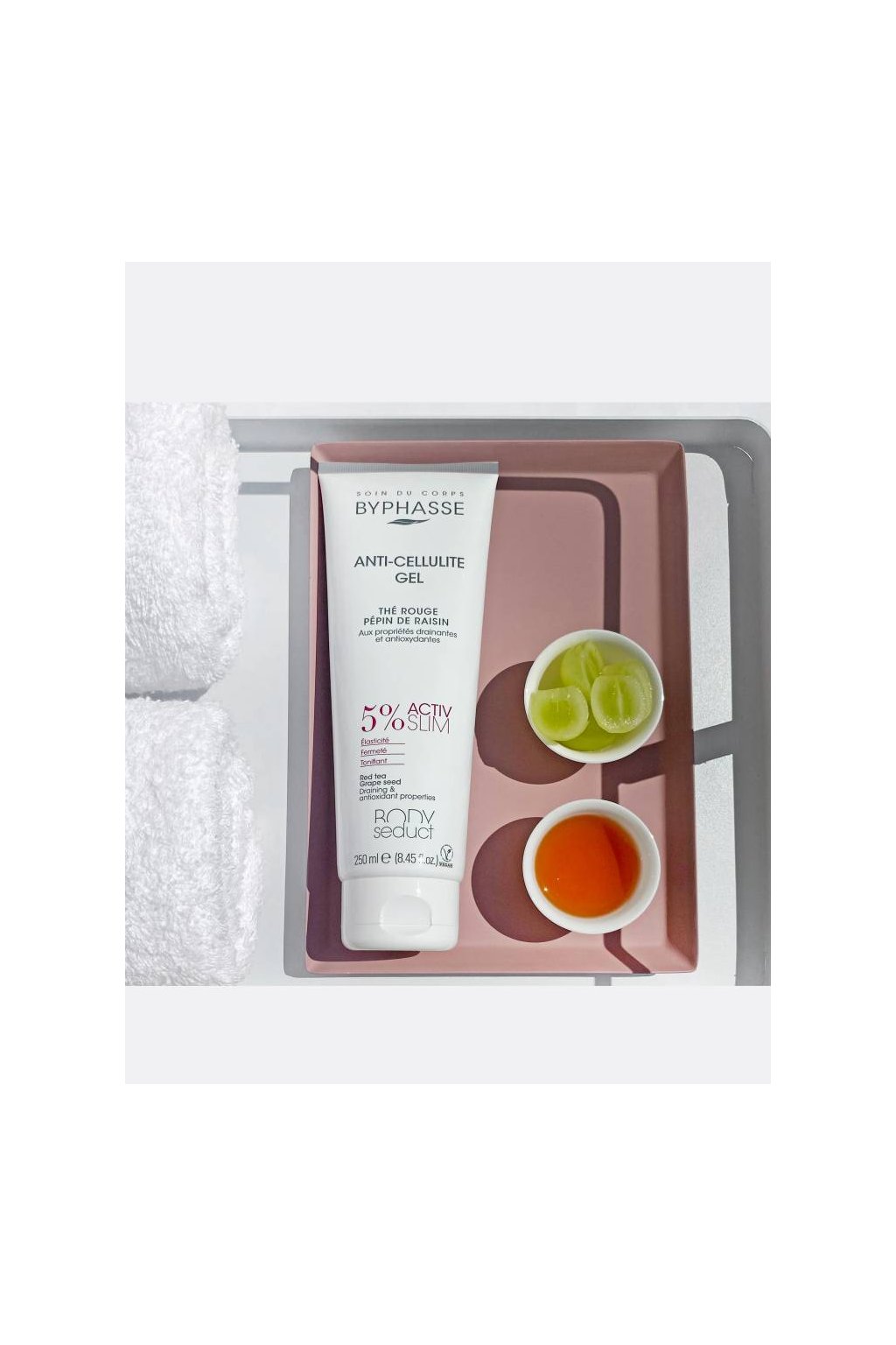Byphasse Body Seduct Anti-Cellulite Gel Red Tea & Grape Seed - Redukční gel, který obsahuje extrakt z červeného čaje a hroznových semínek. Má drenážní (odvodňovací) a antioxidační účinky. Jeho složení obsahuje rostlinný komplex (5% Activ Slim), který působí na lokalizovanou celulitidu - pomerančovou kůži, pomáhá snižovat její viditelnost a zlepšuje elasticitu pokožky. Doporučení: používejte při udržování zdravého životního stylu. Upozornění: vyhněte se kontaktu s očima.