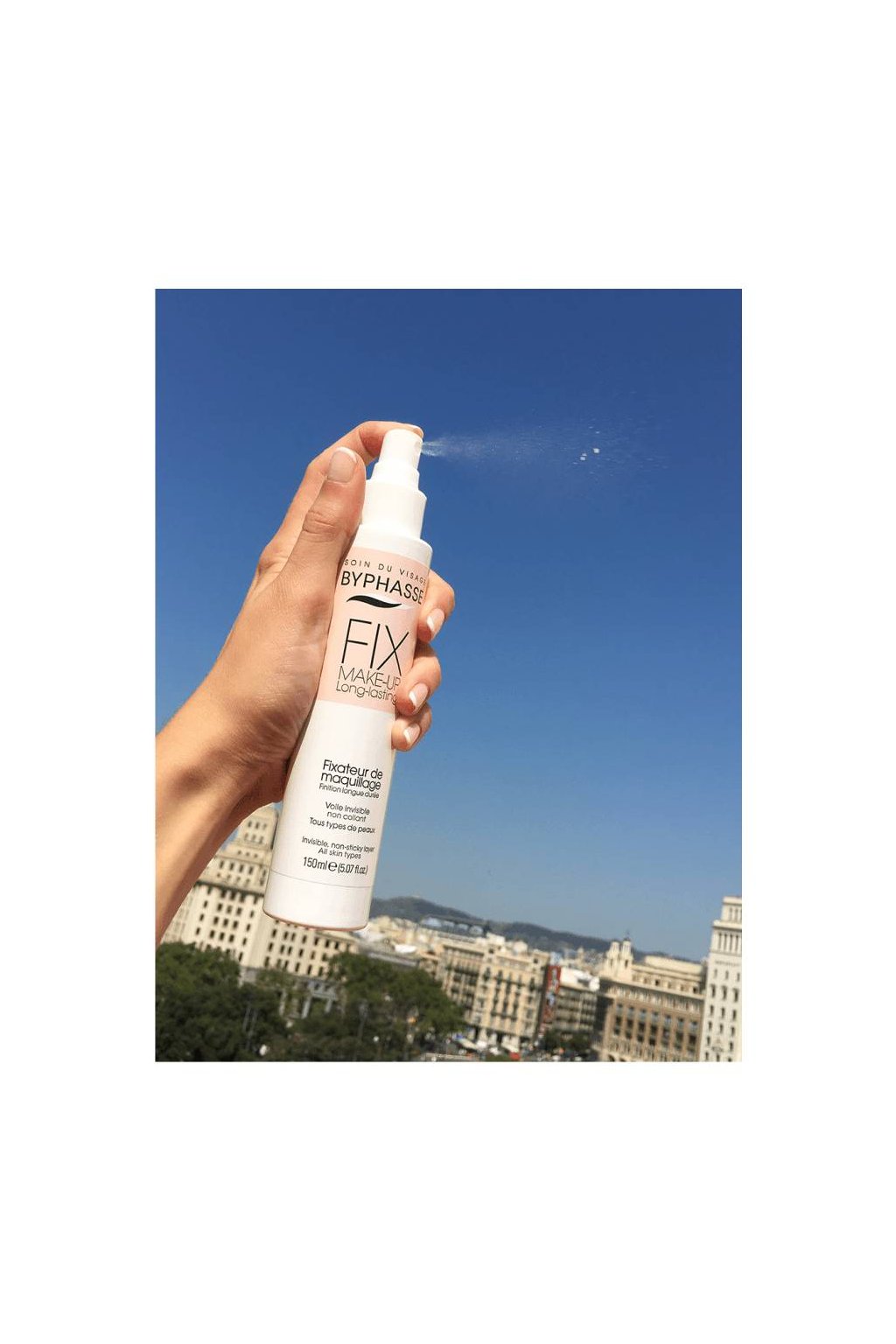 Byphasse Fix Make-Up Long-Lasting - Sprej s růžovou vodou a aloe vera, je speciálně vyvinutý pro dlouhotrvající fixaci vašeho make-upu, pudru, očních stínů, rtěnky a dalších produktů. Fixační sprej dokončí váš make-up a zajistí dlouhotrvající výdrž. Bez viditelného a lepivého „finishe“ efektu. Tento sprej je oblíbený pomocník všech profesionálních vizážistů.