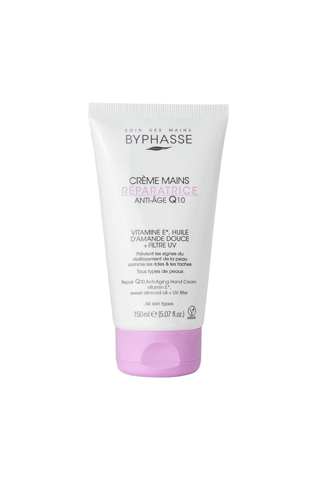 Byphasse Repair Q10 Anti-Aging Hand Cream - "Navždy mladé" ruce s anti-age krémem na ruce s koenzymem Q10 a mandlovým olejem, který pomáhá předcházet známkám stárnutí pokožky. Bojuje proti vráskám a pigmentovým skvrnám. Díky složení s koenzymem Q10, vitamínem E a UV filtrem pomáhá chránit kožní buňky před stárnutím a zachovává pružnost a hebkost pokožky. Vaše ruce budou pevnější, hladší a jemnější.