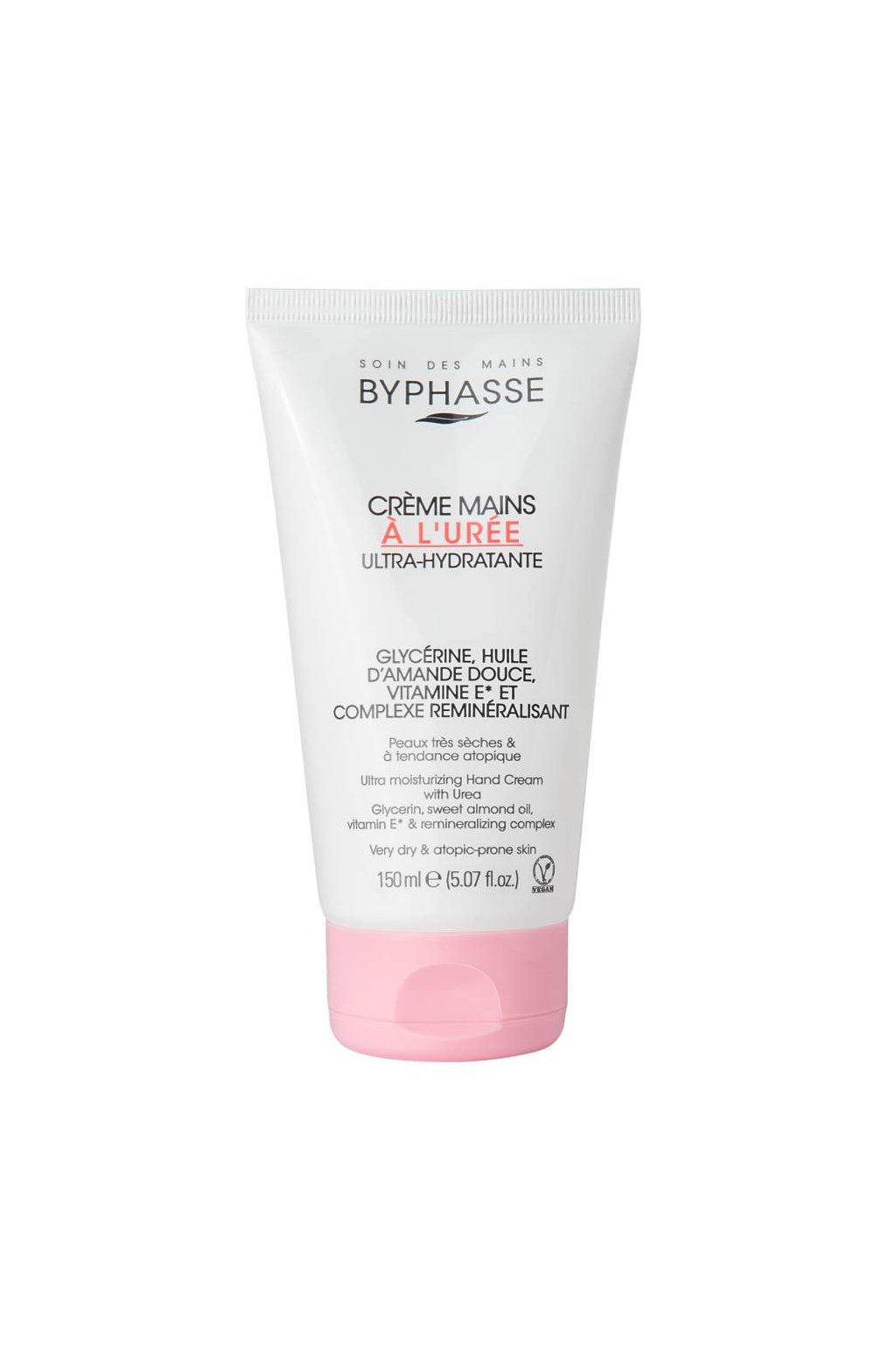 Byphasse Ultra Moisturizing Hand Cream With Urea - Hydratační krém na ruce s ureou a mandlovým olejem intenzivně hydratuje, regeneruje a chrání velmi suchou pokožku se sklonem k atopii. Remineralizační komplex, kombinace hydratačních molekul, sodíku, hořčíku, manganu a zinku, které obnovují pokožku namáhanou od vnějších vlivů.
