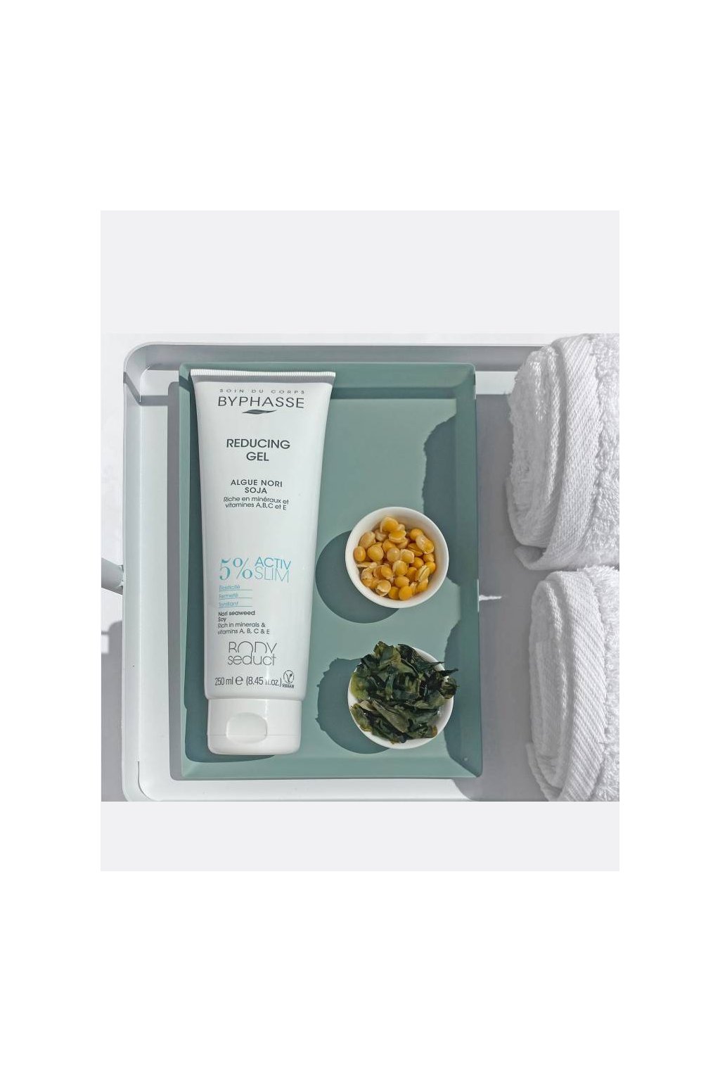 Byphasse Body Seduct Reducing Gel Nori Seaweed & Soy - Redukční gel, který obsahuje extrakty z mořské řasy Nori a sóji. Je bohatý na minerály a vitamíny A, B, C a D. Jeho složení obsahuje rostlinný komplex (5% Activ Slim), který působí na lokalizovanou celulitidu - pomerančovou kůži, pomáhá snižovat její viditelnost a zlepšuje elasticitu pokožky. Doporučení: používejte při udržování zdravého životního stylu. Upozornění: vyhněte se kontaktu s očima.