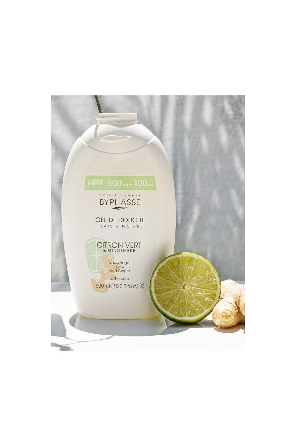 Byphasse sprchová koupel Plaisir Nature Shower Gel Lime & Ginger - Sprchový gel s extraktem z limetky a zázvoru dodá vaší pokožce vše, co potřebuje pro osvěžující a energizující sprchování. Pokožku zanechá jemnou, hebkou a hydratovanou, dává pocit svěžesti a lehkosti. Vhodný pro všechny typy pokožky.