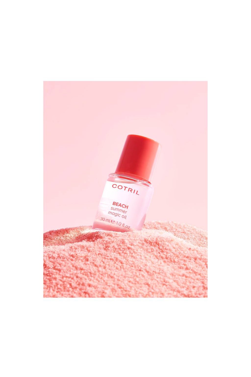 Cotril BEACH Beach Summer Magic Oil - Magický Olej. Již pouhých pár kapek tohoto vzácného zkrášlujícího oleje dodá vlasům hebkost a výživu. S ultra hedvábnou texturou se velmi rychle vstřebává a je ideální jak pro ošetření citlivých vlasů na pláži během slunění nebo koupání, tak také jako finální ošetření po mytí vlasů. Dodává extrémní lesk a zahaluje do rafinované letní vůně. Díky svému multifunkčnímu složení dodává během několika málo okamžiků mimořádnou krásu všem typům vlasů…“síla jednoduchosti pro dokonalý vzhled a bezstarostné léto“.