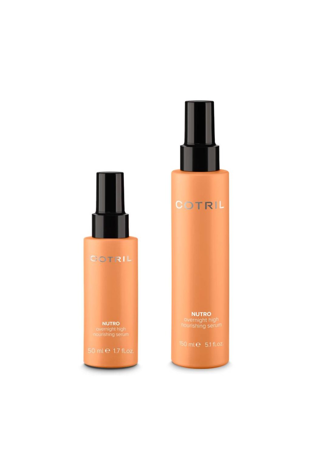Cotril NUTRO Overnight high nourishing serum. První noční sérum Cotril. Ultra vyživující noční sérum pro suché, matné a nudné vlasy. Suché, krepaté a stresované vlasy vyžadují intenzivní péči. To je důvod, proč Cotril přichází s nočním sérem, které posouvá péči o suché a neposedné vlasy na zcela novou úroveň a doplňuje tak celkové ošetření suchých a dehydratovaných vlasů v domácím prostředí. Vlasy během několikahodinového spánku postupně z nočního séra vstřebávají vzácné ultra vyživující složky. Vlasy jsou po probuzení viditelně lesklejší, jemnější, vitálnější a bez krepatění. Díky výjimečné nemastné textuře, která působí bezezbytku, nejsou vlasy po probuzení zatížené ani mastné a sérum tak není nutné z vlasů oplachovat.