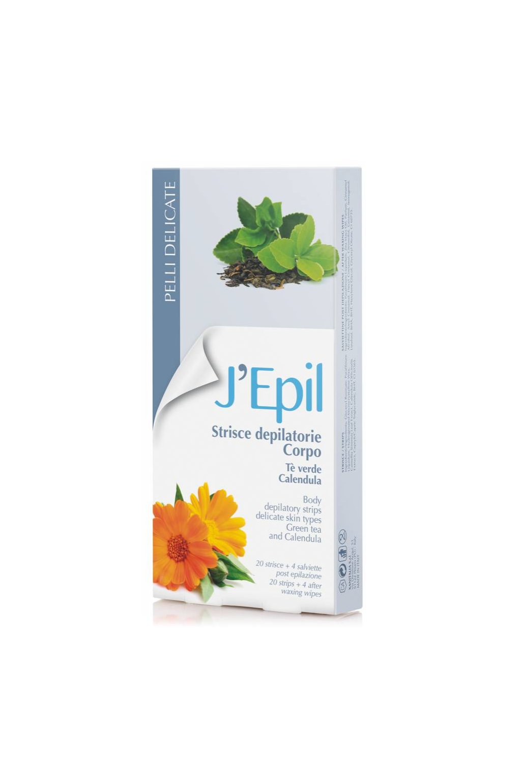 VOSKOVÉ PÁSKY NA TĚLO pro okamžité a snadné použití s dlouhotrvajícím účinkem. S obsahem zeleného čaje a měsíčku lékařského, ideální pro citlivou pokožku.
