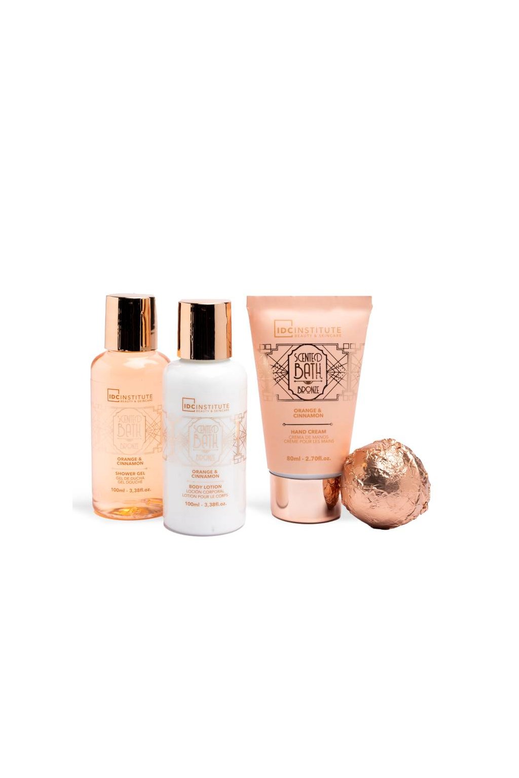 IDC SET 4ks Bronzová vanička s péčí o tělo s vůní pomeranče a skořice