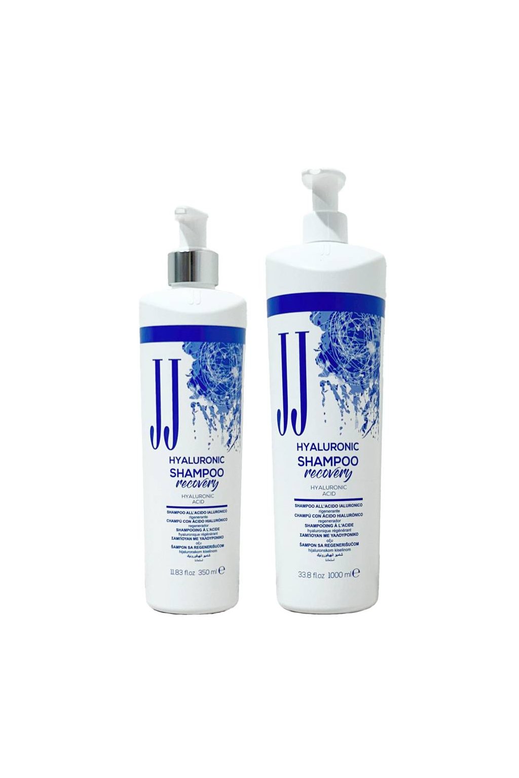JJ HYALURONIC Shampoo Recovery - Regenerační a hydratační šampon s kyselinou hyaluronovou pro hloubkovou a dlouhotrvající hydrataci narušených a silně poškozených vlasů. Kyselina hyaluronová udržuje hydrataci a chrání tkáně. Vyplňuje a obnovuje strukturu vlasu. Zaručuje hebké a lesklé vlasy, které získávají zpět svou přirozenou vitalitu a lesk. Ideální pro narušené a silně poškozené vlasy.