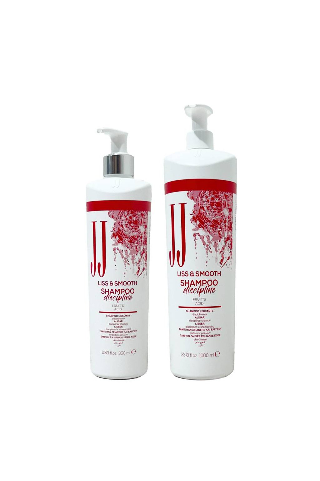 JJ LISS/SMOOTH Shampoo Discipline - Šampon na vlasy s ovocnými kyselinami uzavírá kutikulu a spouští vyhlazující působení proti krepatění vlasů. Vyhlazuje, hydratuje, posiluje strukturu vlasových vláken a poskytuje vlasům potřebnou výživu. Obnovuje přirozený lesk vlasů uhlazením vlasových vláken. Zaceluje povrch vlasů a chrání je před vlhkostí. Ideální pro nepoddajné a krepaté vlasy.