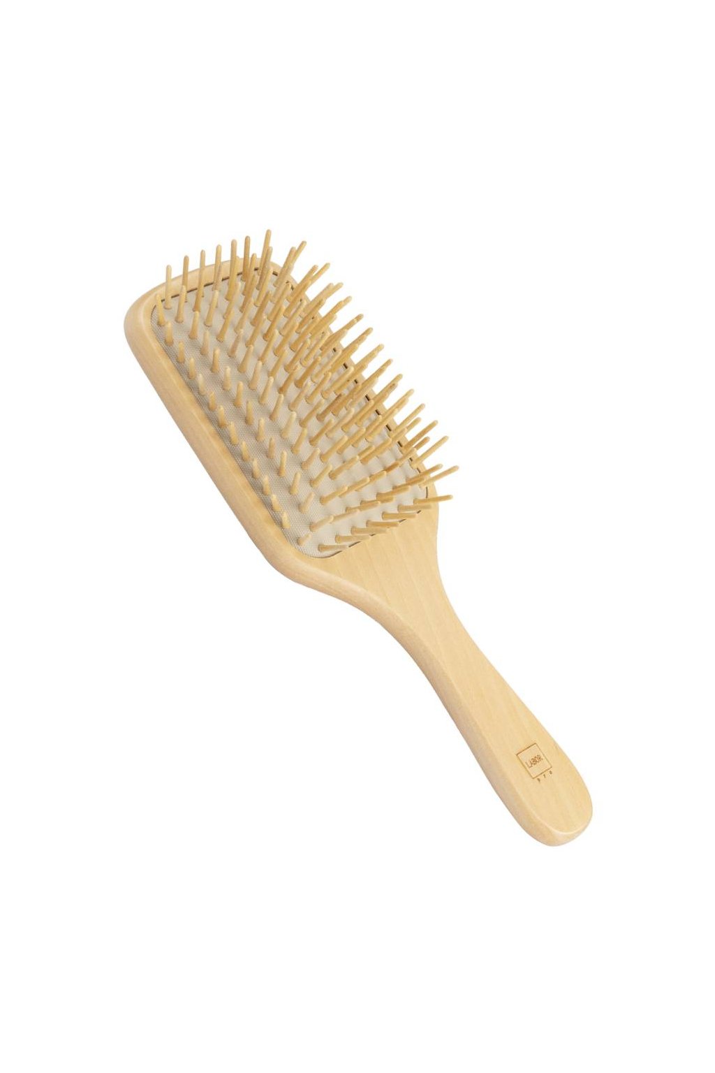 Kartáč na vlasy plochý široký, světlý polštář, dřevěné trny