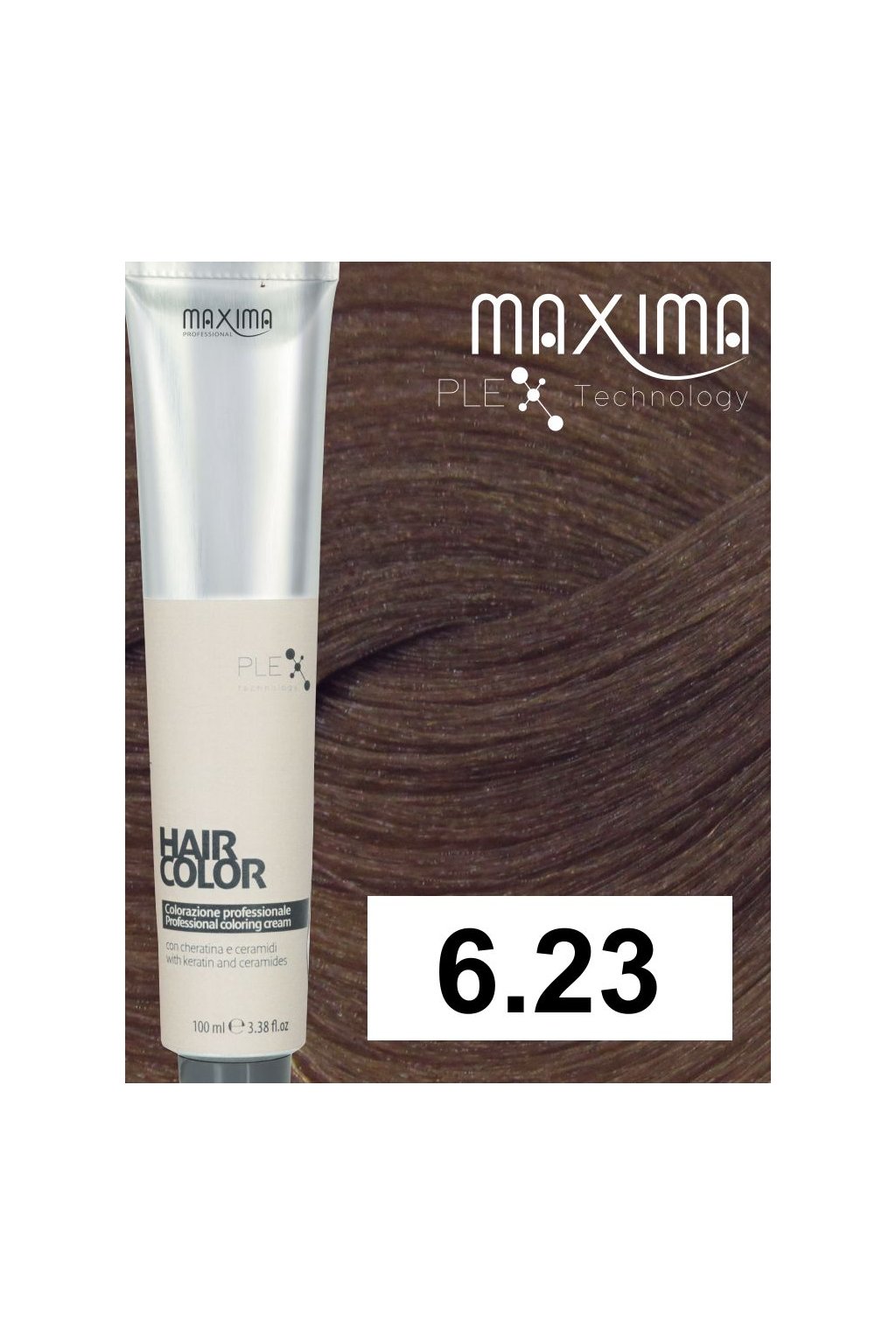 MAXIMA HAIR COLOR PLEX 100 ml - Profesionální barva na vlasy s ceramidy, keratinem a technologií PLEX. Špičkové složení založené na technologii Plex zlepšuje kosmetický výsledek barvení tím, že posiluje vlasové vlákno. Díky novému systému pečlivě kalibrovaných pigmentů zajišťuje vynikající barevný efekt, celkové krytí šedin, maximální spolehlivost, stabilitu a odolnost odlesků. Obohacená o keratin a ceramidy, které dodávají vlasům zdravý vzhled, hebkost a výjimečný lesk. Maxima nabízí exkluzivní výběr moderních odstínů, které jsou intenzivní a energické.