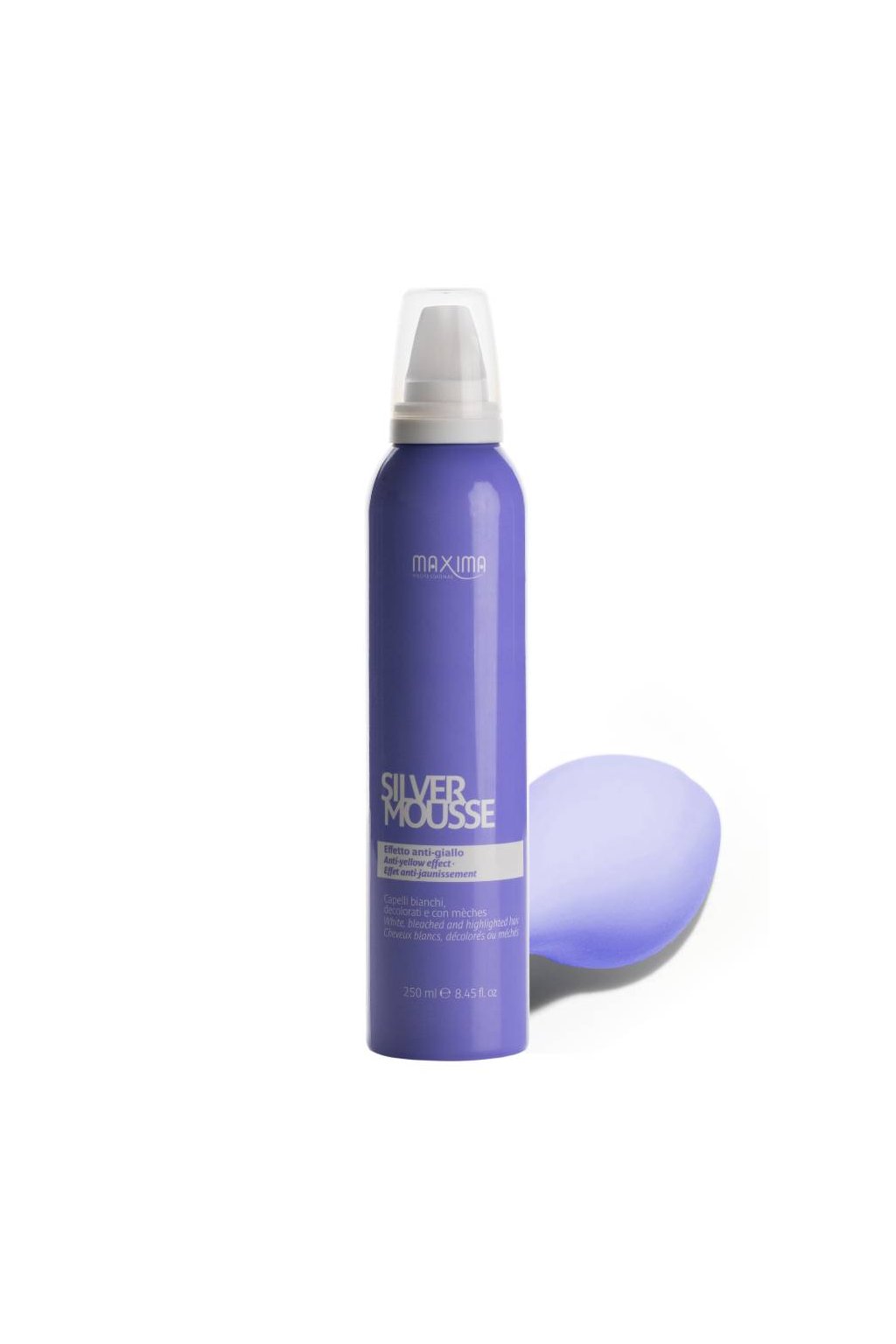 Maxima SILVER MOUSSE Bezoplachová pěna pro blond odbarvené, melírované, bílé nebo šedivé vlasy. Díky výjimečným fialovým pigmentům se zesíleným účinkem odstraňuje nevzhledné žluté tóny a dodává neuvěřitelný a dlouhotrvající lesk. Je hustá a bohatá, hydratuje vlasy a dodává jim výživu. Vlasy jsou po ošetření jemné a hebké. Usnadňuje styling, nezatěžuje a je ideální i pro jemné vlasy.