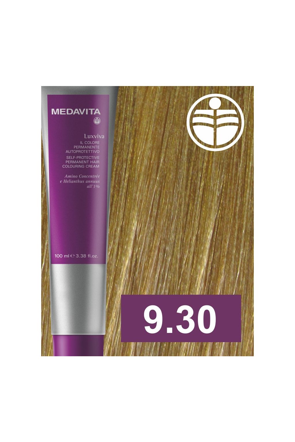 Medavita Il colore LUXVIVA 100 ml – Profesionální permanentní autoochranná barva na vlasy. Inovativní barva obsahuje čisté oxidační pigmenty, zajišťuje intenzitu přírodní barvy vlasů s výbornou stabilitou a absolutním 100% krytím šedivých vlasů. Obohacená o exkluzivní přírodní aktivní složky, které vyživují a chrání vlasová vlákna. Dává extrémní lesk a hebkost s plným respekt k vlasové pokožce a vlasům. Výsledkem je intenzivní a zářivá barva, hluboké odstíny, vysoká péče o vlasové délky, snadná úprava vlasů a dlouhodobá stabilita barvy. Barvící směs má výbornou přilnavost a snadno se oplachuje. Zesvětlení až o 3 tóny u barev a až o 4/5 tónů u barev super zesvětlujících. Maximální věrnost vlasovému vzorníku.