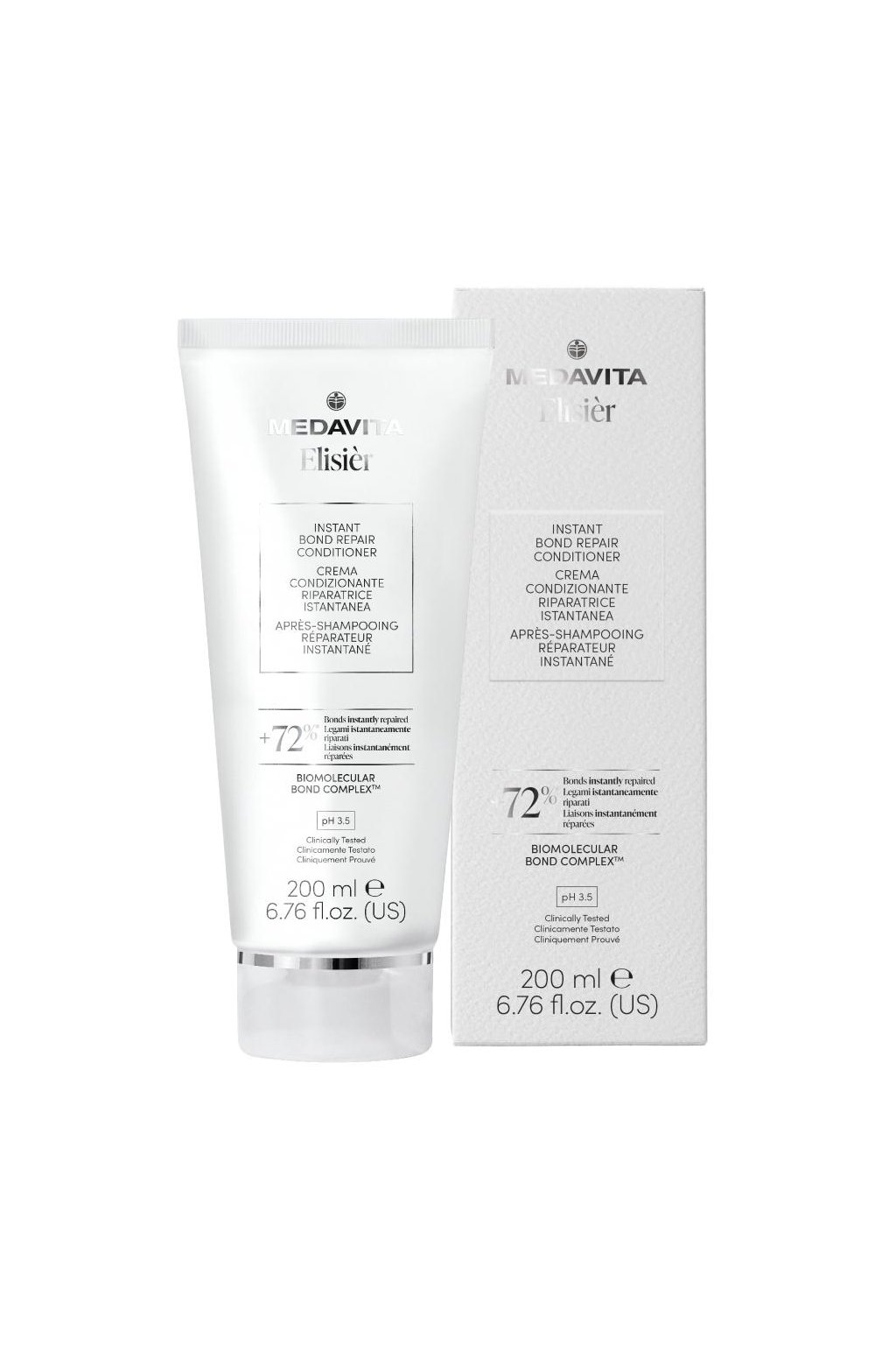 Medavita Elisièr Instant Bond Repair Conditioner pH 3.5 - Kondicionér pro okamžitou obnovu je ideální pro barvené, poškozené a namáhané vlasy. Poskytuje intenzivní výživu a zároveň okamžitě obnovuje disulfidové vazby ve vlasech. Zvyšuje pevnost, hebkost a lesk vlasů a s každým použitím přináší okamžitou i dlouhodobou obnovu. Vlasy jsou viditelně jemnější, hladší a snadněji se rozčesávají. Používejte po umytí šamponem, denně nebo při každém mytí vlasů.