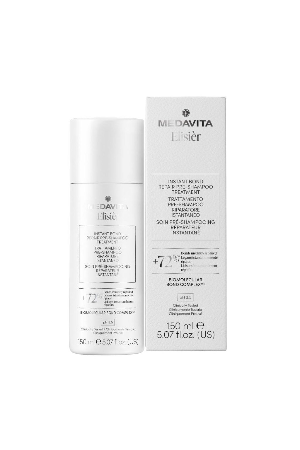 Medavita Elisièr Instant Bond Repair Pre-Shampoo Treatment pH 3.5 - Ošetřující péče před mytím vlasů ideální pro barvené, poškozené a namáhané vlasy, které jsou lámavé, křehké nebo ztratily pružnost. Obnovuje vazby vlasových vláken a navrací jim pevnost, novou sílu a odolnost. Poskytuje okamžité i dlouhodobé výsledky a viditelně revitalizuje i ty nejvíce poškozené vlasy. Zanechává vlasy lesklé, hladké a výjimečně nádherné.
