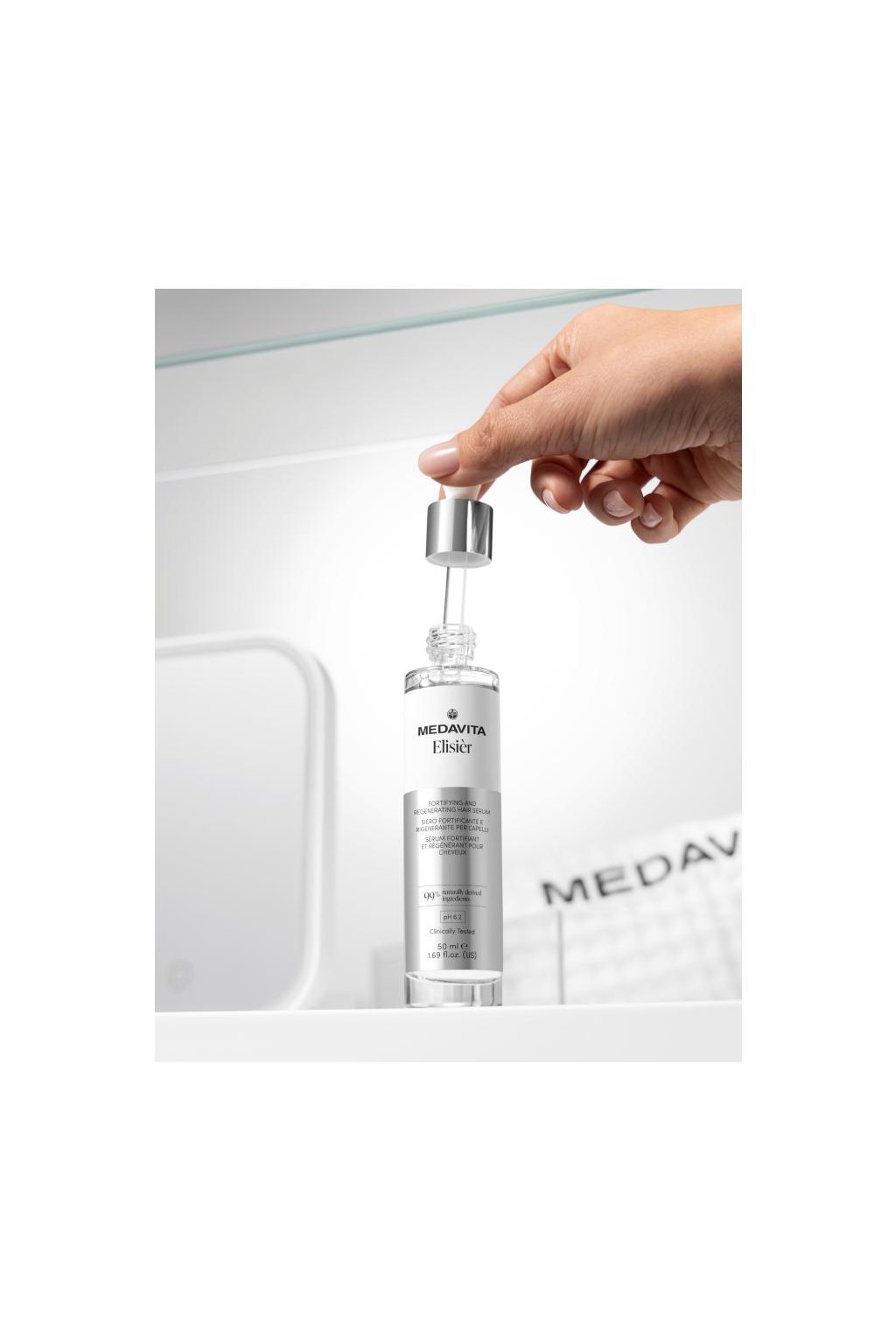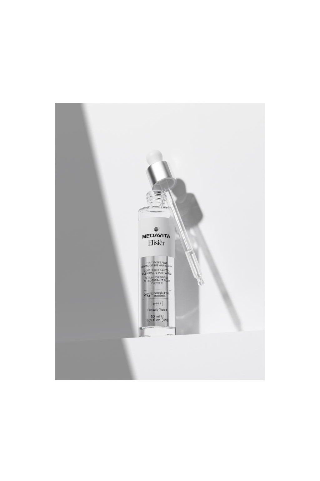 Medavita Elisièr Fortifying end regenerating hair serum - Klinicky testovaná přírodní účinnost. Každým dnem budou vlasy lesklejší, pružnější, objemnější a vitálnější. Zlepšuje pevnost, odolnost, lesk a objem. Pouze šťastná a vyrovnaná vlasová pokožka vede k silnějším a zdravějším vlasům. Pouze pár kapek Elisièru denně! Posilující a regenerační vlasové sérum, které zlepšuje: PEVNOST, ODOLNOST, LESK, OBJEM a udržuje vitalitu a krásu vlasů v průběhu času. 3 roky výzkumu, mezinárodní studie. Elisièr prošel několika experimentálními testy. Produkt testovalo 150 dobrovolníků po dobu 8 týdnů. Klinické, přístrojové, trichologické a senzorické testy potvrdily jeho účinnost a bezpečnost.