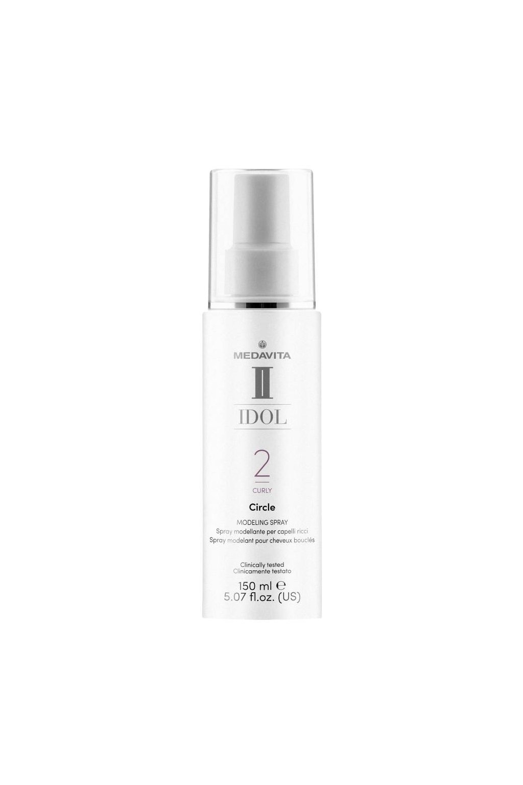 Medavita IDOL - Twist&curl Circle Modeling spray. Stylingový sprej pro vlnité a kudrnaté vlasy. Vytváří lehký objem. Nezanechává zbytky.