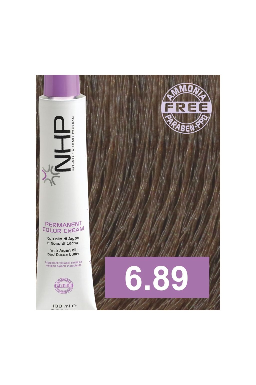 BARVA NHP - NATURAL HAIRCARE PROGRAM 100 ml - Profesionální barva na vlasy s arganovým olejem a kakaovým máslem. Neobsahuje: PPD, AMONIAK, SLES, PARABENY, DEA PARAFÍN, VAZELÍNY a SILIKONY. Profesionální řada, která uspokojí neustále narůstající pozornost zákazníků ke složení kosmetických výrobků, a která odpovídá požadavkům na přírodní složky. Permanentní barvení, které pečuje o vlas a působí s maximální jemností. Bezpečný produkt, obzvláště vhodný pro ty, kteří mají citlivou pokožku, nebo velmi poškozené a narušené vlasy. 100% krytí; komfort; výsledek; péče. Maximální snášenlivost a komfort - bez nepříjemného zápachu. Perfektní výsledky barvení - vyvážené složení. Garantuje stálost barvy a absolutní respekt ke struktuře vlasů. Vlasy jsou chráněny, vyživovány, hebké a dokonale lesklé. Aktivní složky: arganový olej nazývaný tekuté zlato, získaný ze semínek Argania Spinosa. Dává vlasům neuvěřitelnou hebkost a lesk. Bohatý na vitamín E. Kakaové máslo je koncentrovaný rostlinný tuk, který vzniká lisováním rozdrcených pražených kakaových bobů (semena stromu Kakaovníku pravého Theobroma cacao). Díky jeho vynikajícím zjemňujícím vlastnostem je velmi účinné v boji proti dehydrataci vlasů a vlasové pokožky. Bohaté na vitamíny a minerály. Má antioxidační a ochrannou schopnost, Speciální konzistence dodává barvícímu krému jemnou a celistvou texturu. Omega 6 a fytosteroly, které vyživují a obnovují vlasy do hloubky. Lehký a okamžitě vstřebatelný, směřuje pigmenty barvy do středu vlasového vlákna.