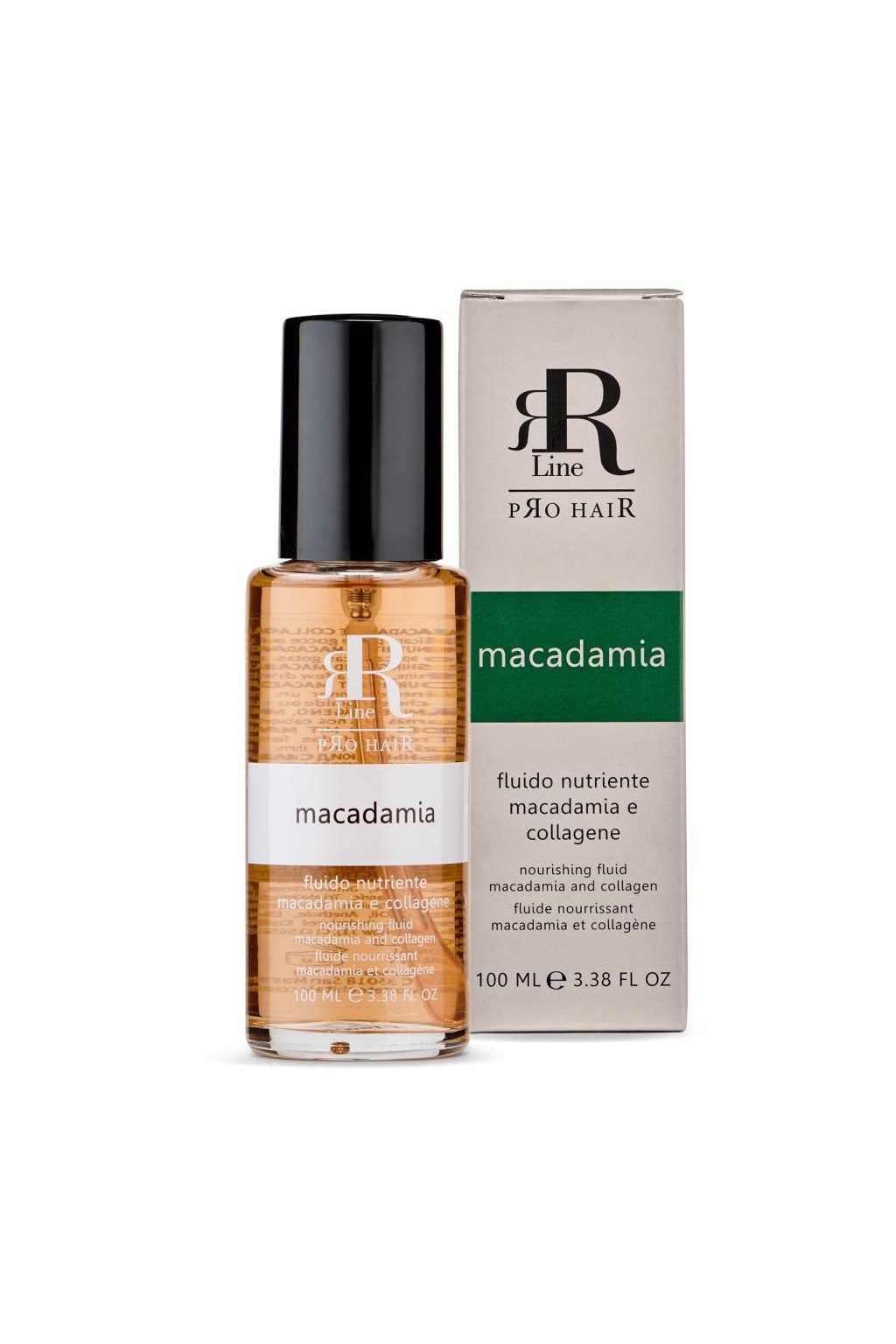 RR Line Nourishing Fluid Macadamia And Collagene. Vyživující fluid s makadamiovým olejem a kolagenem ideální pro namáhané, matné vlasy bez lesku. Hydratuje a vyživuje vlasy po celé jejich délce až ke konečkům. Vlasům dodává mimořádný lesk, hebkost a hedvábnost. Bojuje proti krepatění vlasů a vzniku roztřepených konečků. Zanechává vlasy uvolněné, lehké a zářivé.