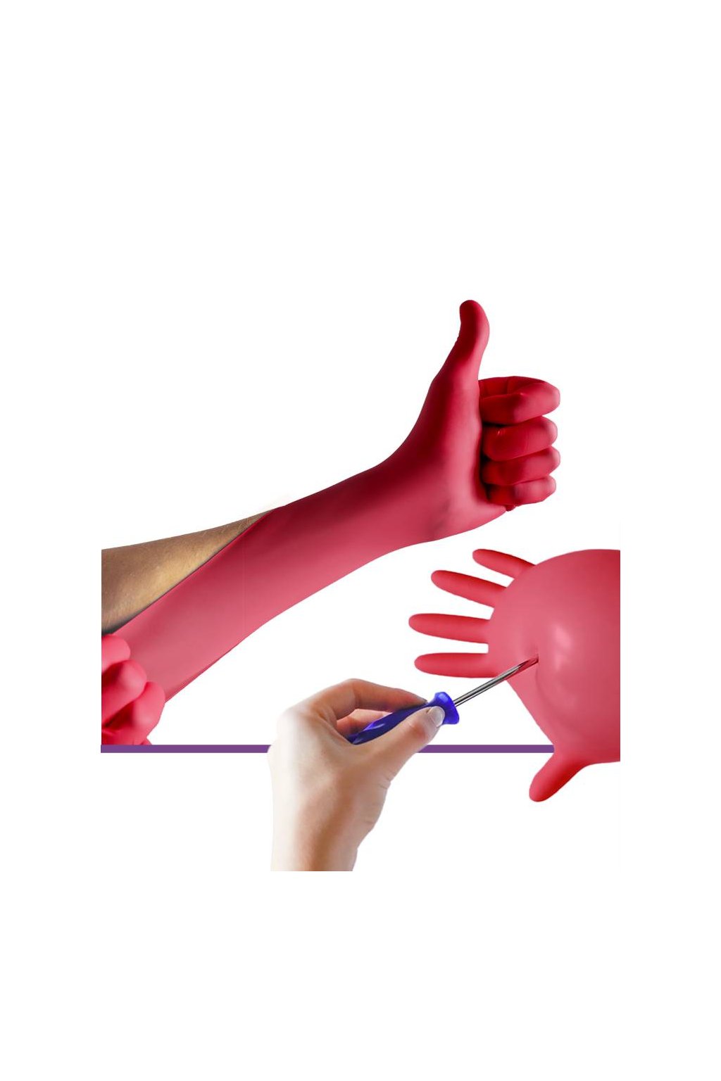 Odolnost proti protržení: materiál nitrilových rukavic PREMIUM 3 dosahuje až 0,12 mm tloušťky a poskytuje tím odpovídající ochranu při práci. Díky své tloušťce mají rukavice výbornou odolnost proti propíchnutí.